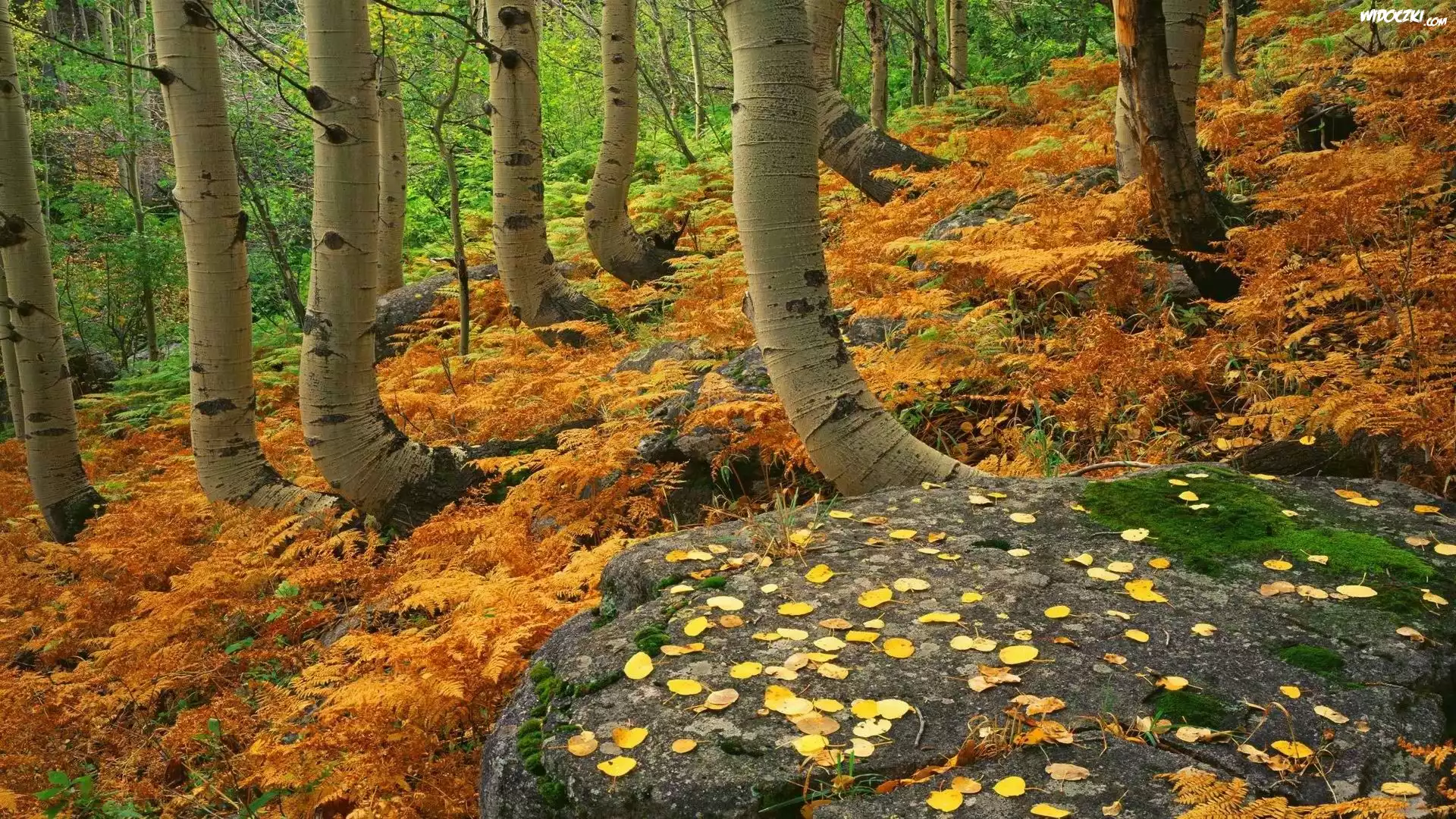 Zdjęcia, Las, Kamienie, Drzewa, Paprocie