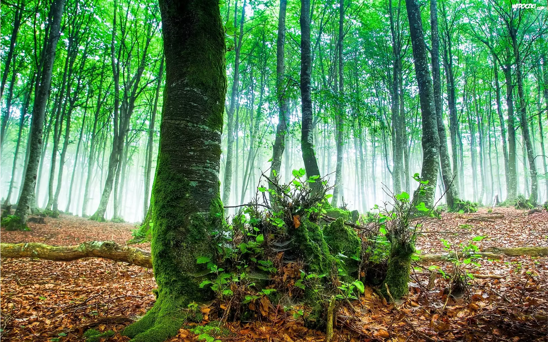 Zdjęcia, Las, Liście, Drzewa, Mech