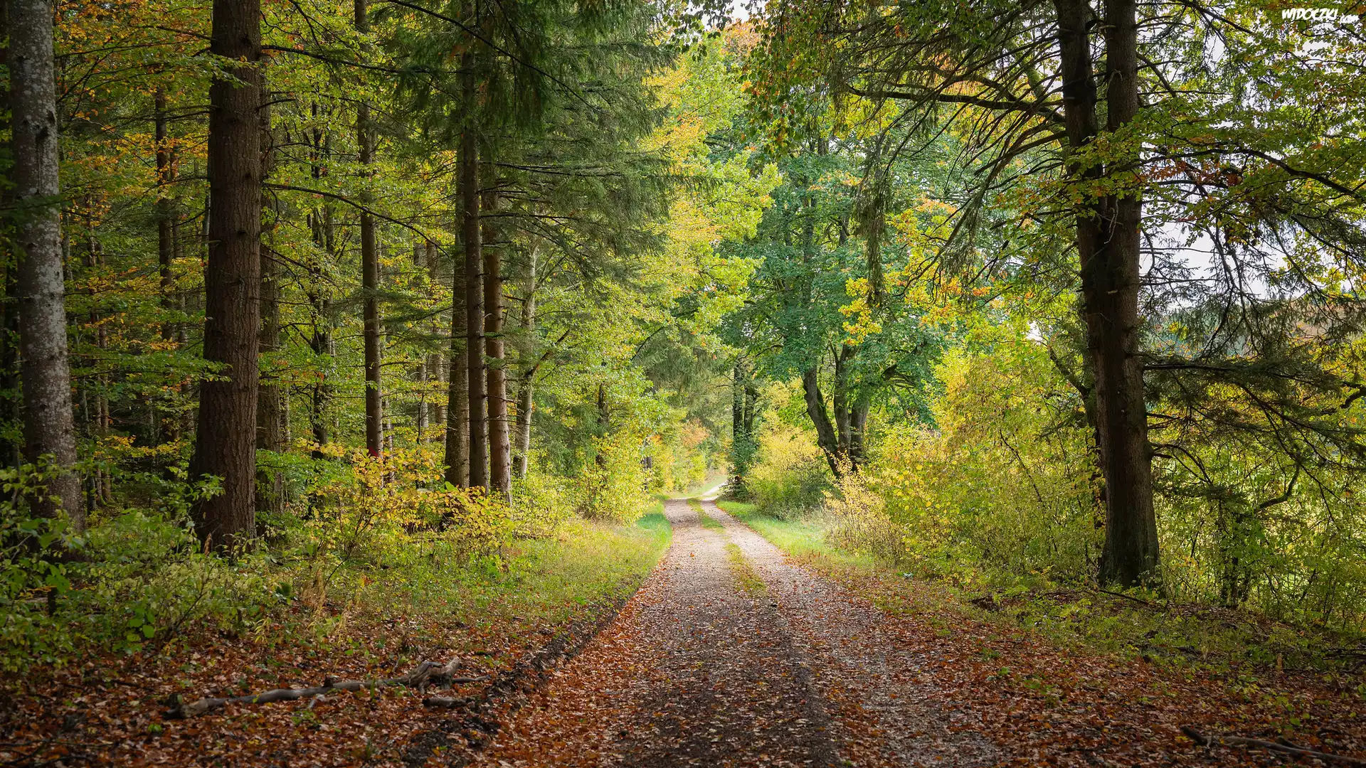 Zdjęcia, Droga, Las, Drzewa, Opadłe, Liście