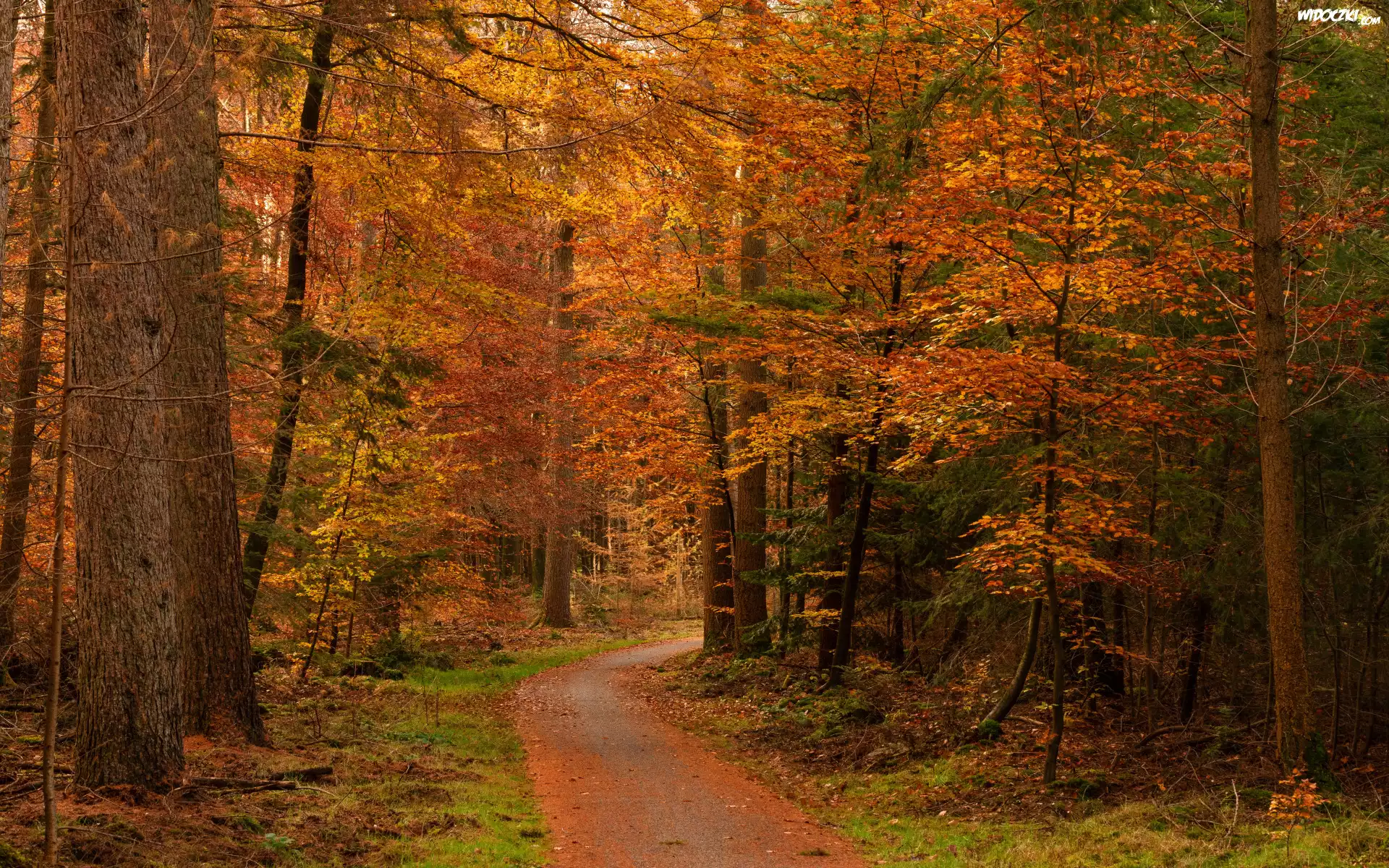 Zdjęcia, Jesień, Las, Drzewa, Ścieżka, Liście