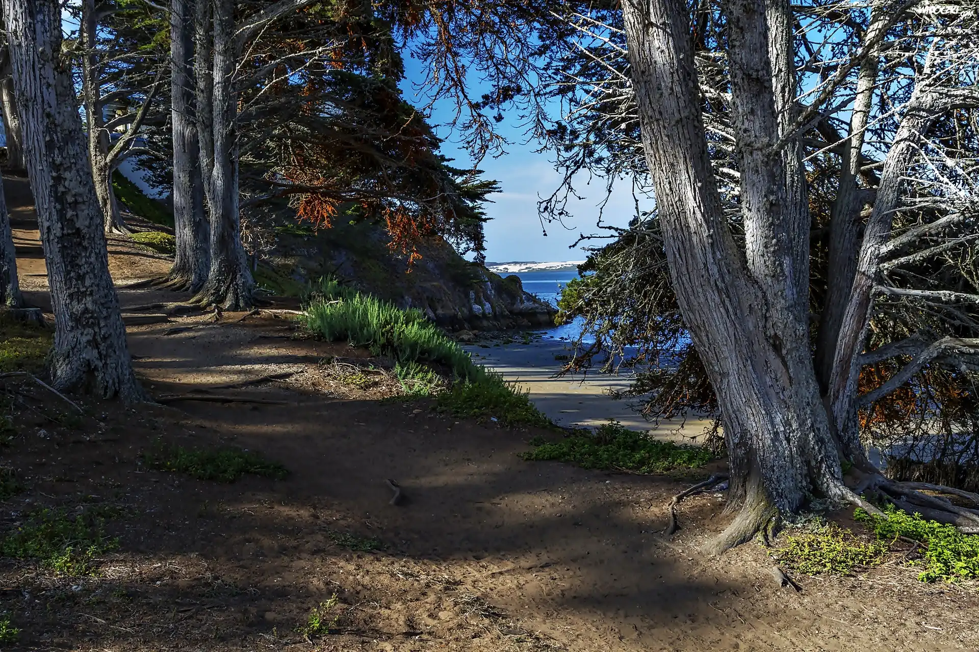 Zdjęcia, Las, Ścieżka, Morze, Drzewa, Wybrzeże