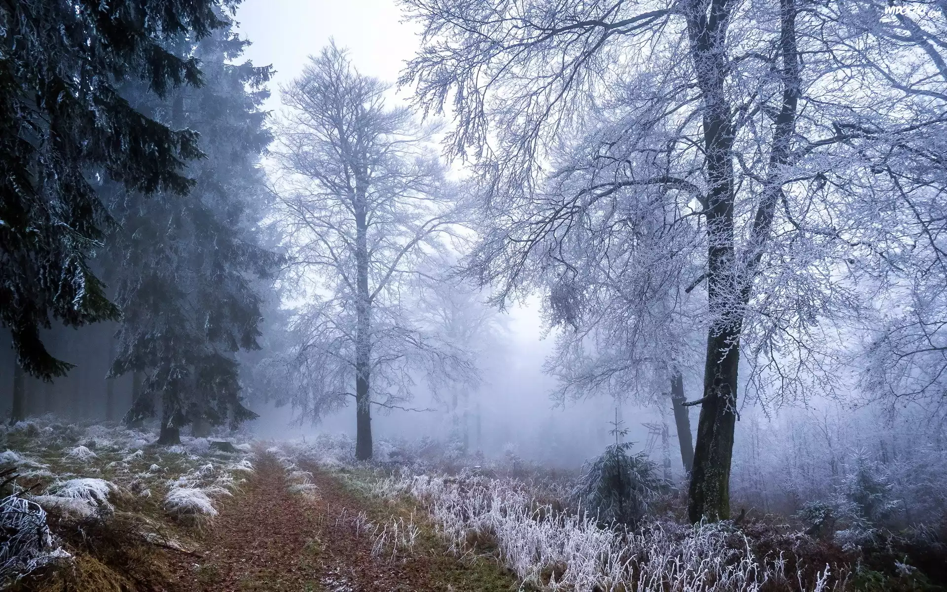 Zdjęcia, Las, Droga, Ośnieżone, Drzewa, Zima