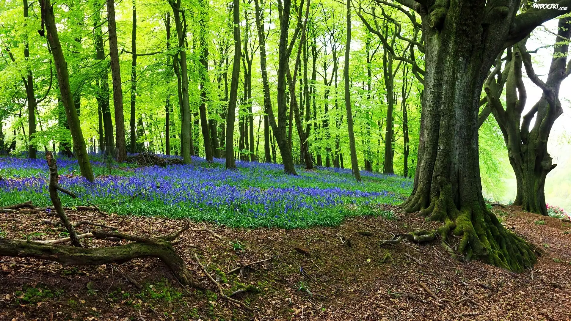 Zdjęcia, Las, Polana, Drzewa, Kwiaty