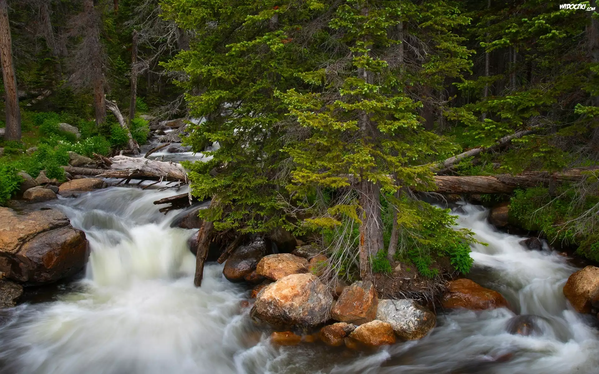 Zdj臋cia, Las, Rzeka, Powalone, Drzewa, Kamienie