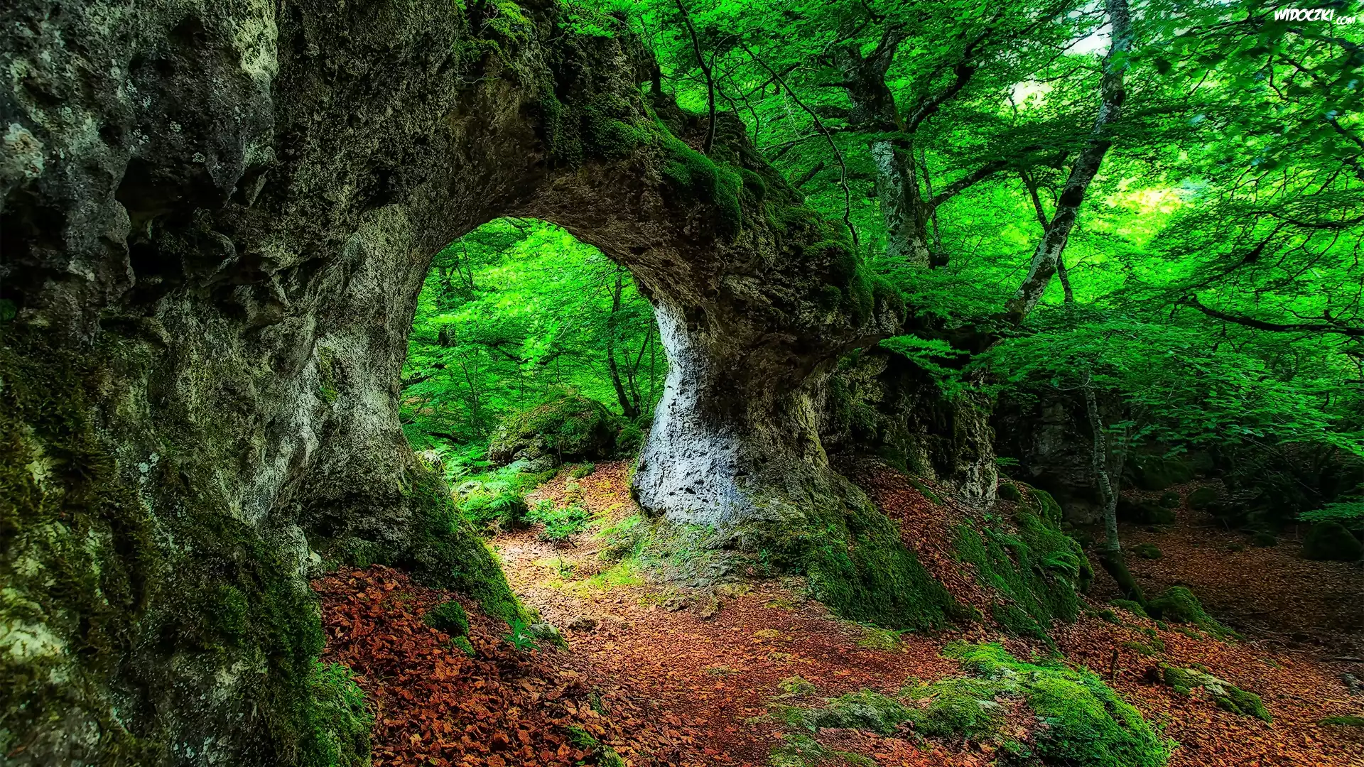 Zdjęcia, Las, Skała, Drzewa, Roślinność