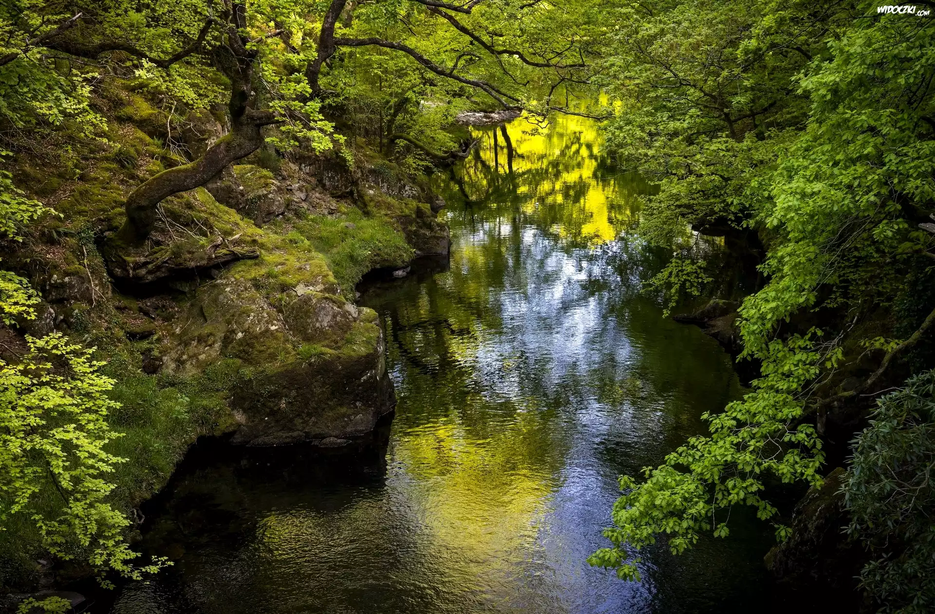 Zdjęcia, Las, Rzeka, Skały, Drzewa, Roślinność