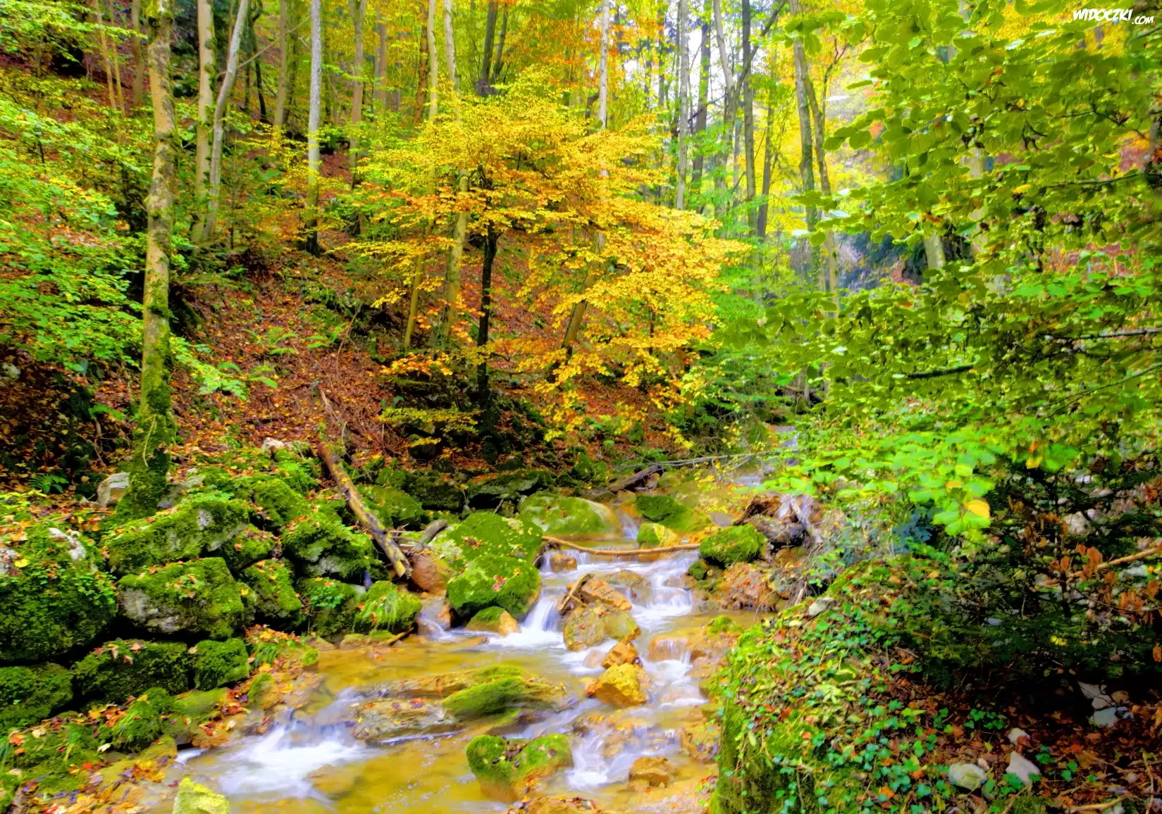 Zdjęcia, Las, Strumyk, Drzewa, Jesień