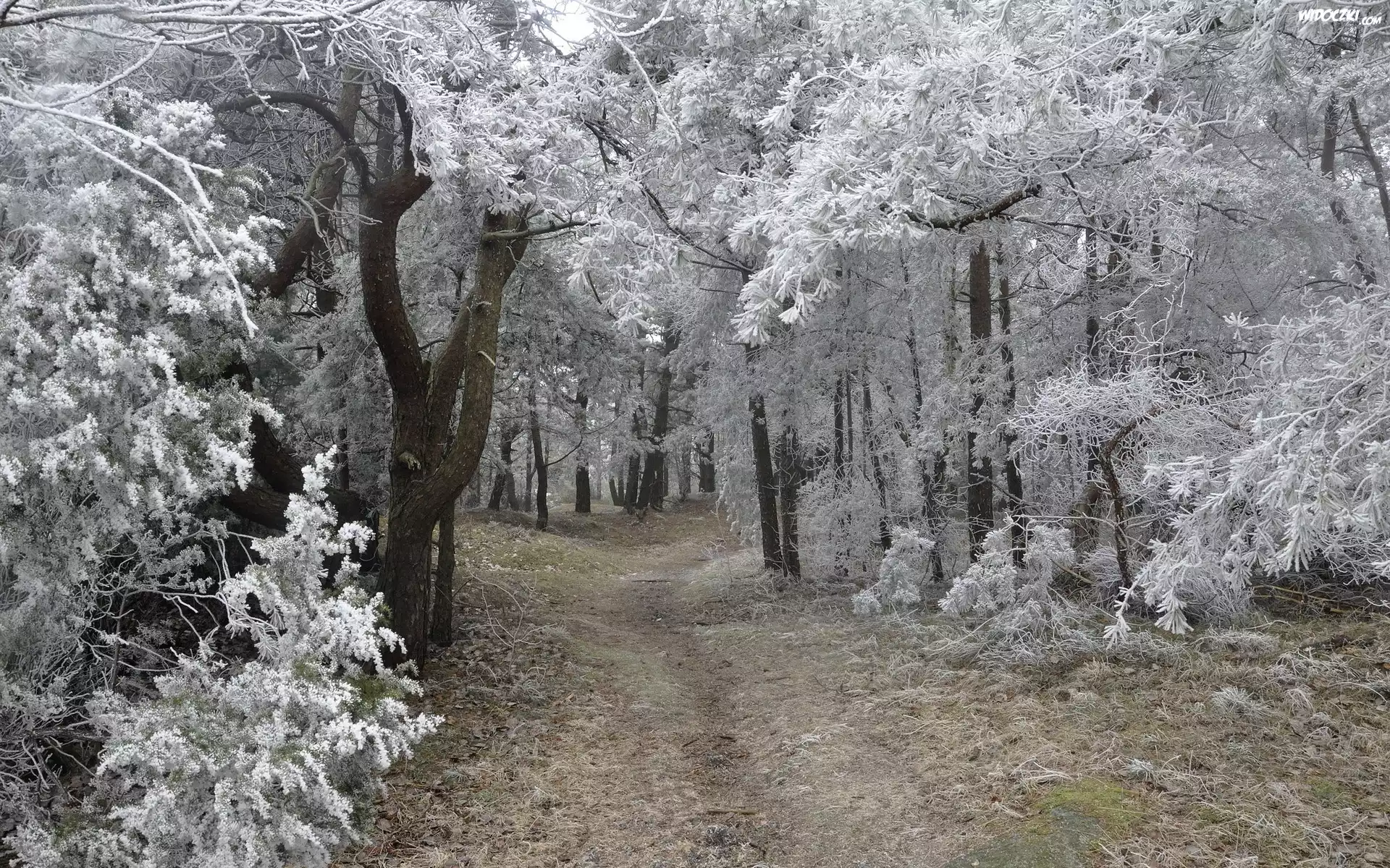 Zdjęcia, Las, Ścieżka, Zamarznięte, Drzewa, Zima