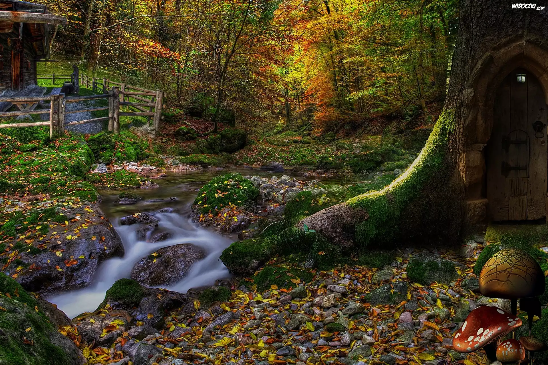 Zdjęcia, Las, Strumyk, Drzewo, Grzybki