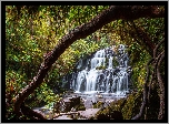 Las, Drzewa, Wodospad, Kamienie, Mech, Purakaunui Falls, Nowa Zelandia