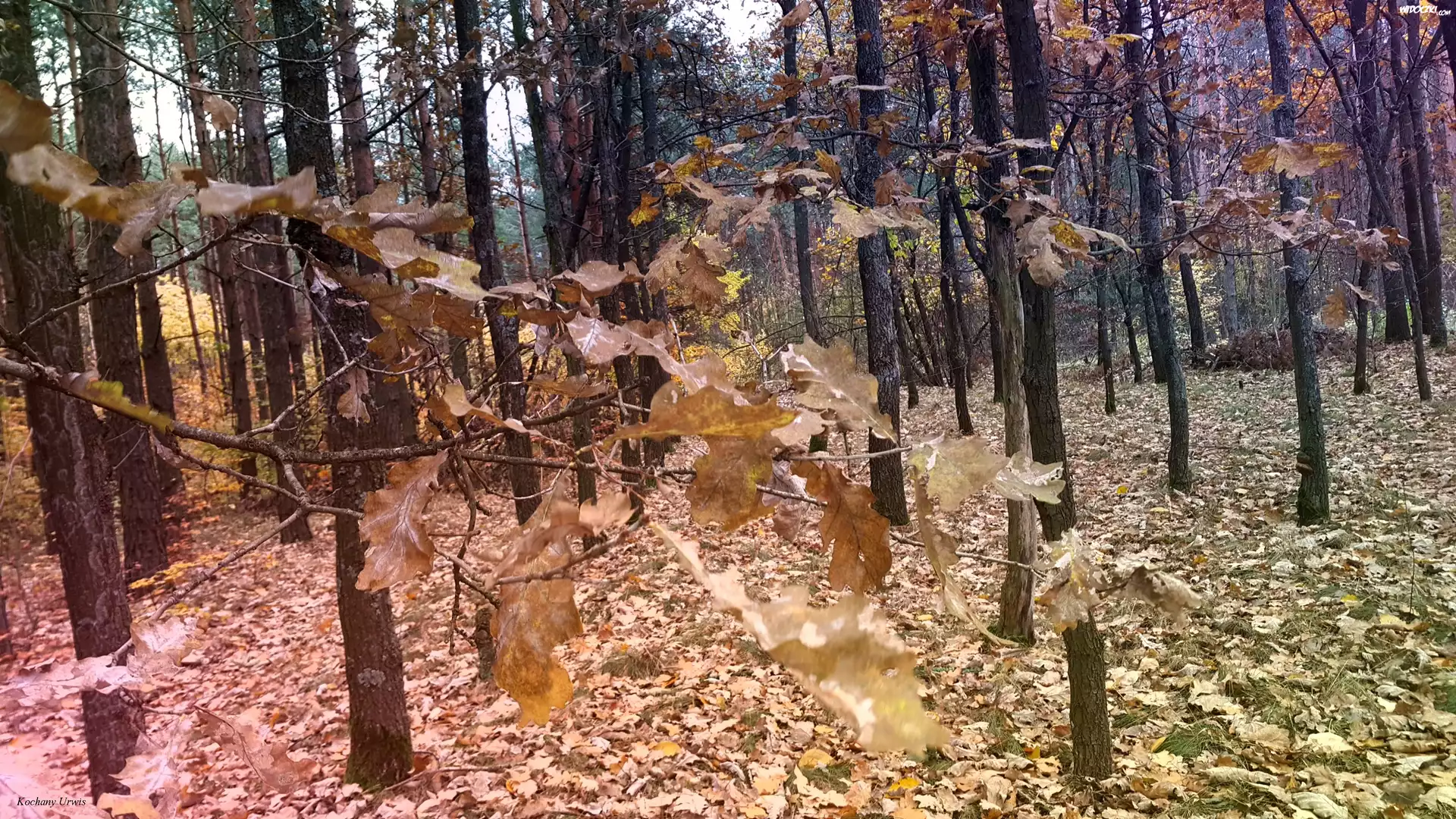 Zdjęcia, Las, Jesień, Gałązki, Dębu