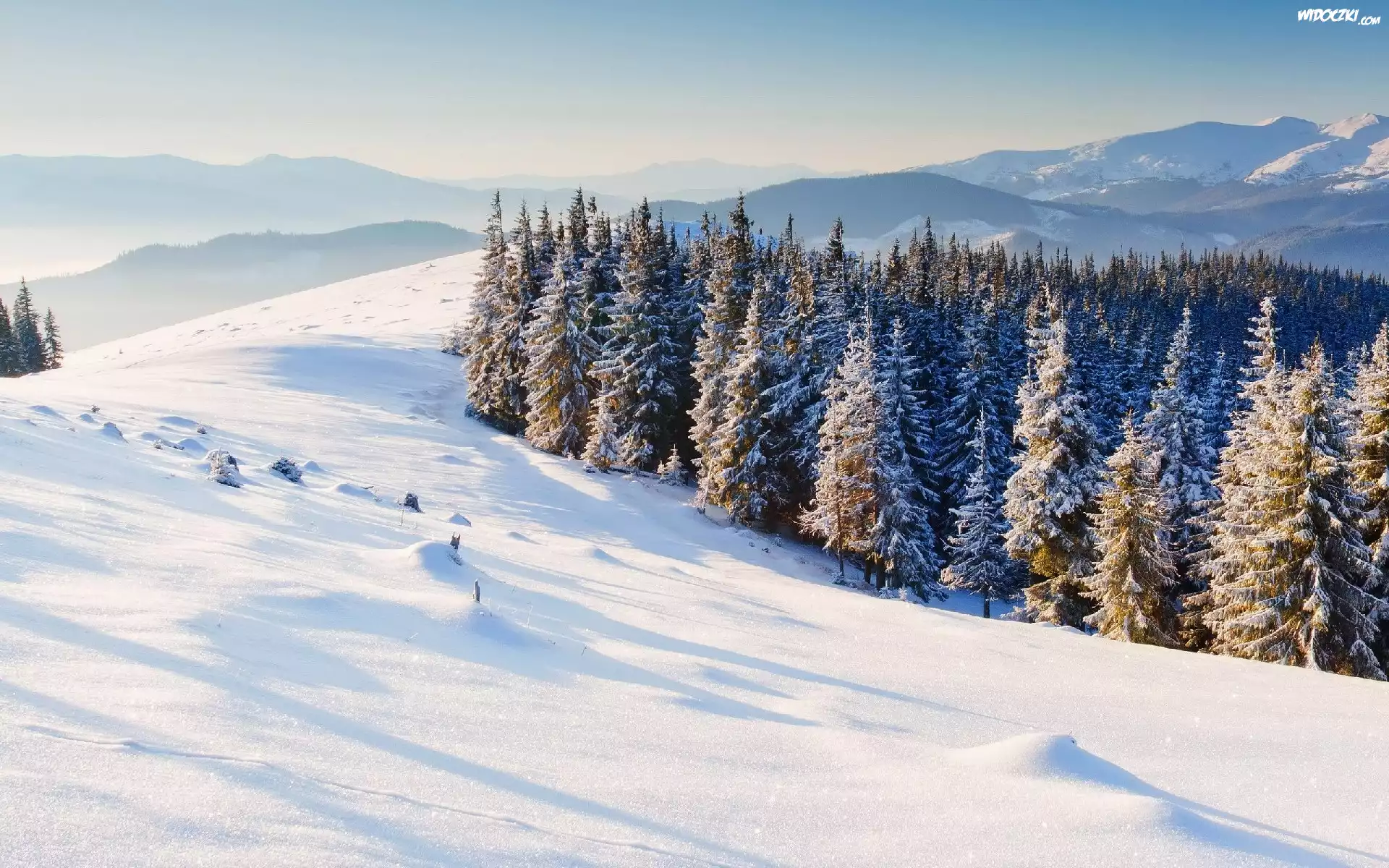 Las, Drzewa, Iglaki, Góry, Śnieg