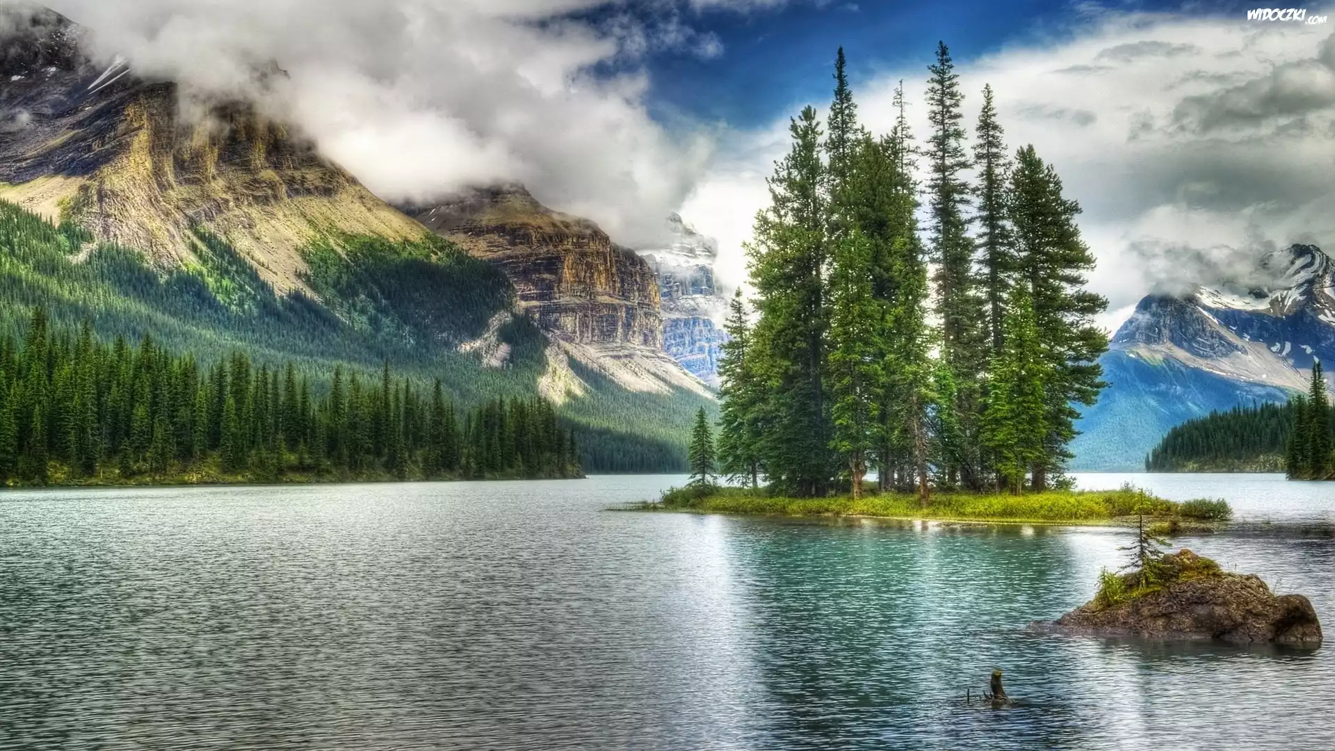 Zdjęcia, Las, Jezioro, Góry, Chmury