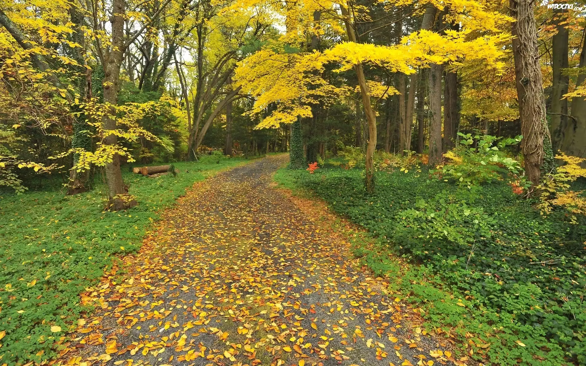 Zdjęcia, Las, Droga, Jesień, Liście