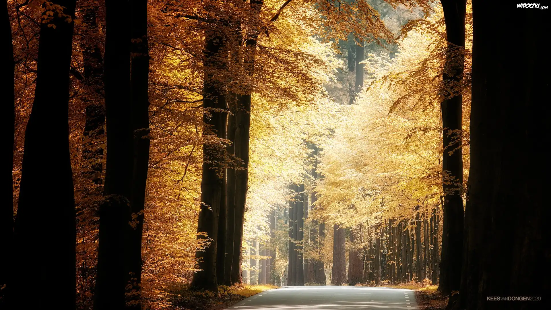 Zdjęcia, Las, Drzewa, Pnie, Jesień, Droga