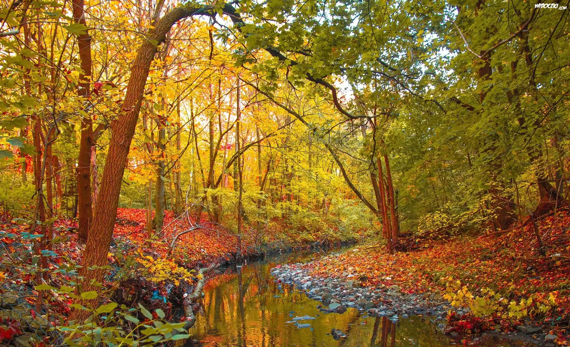 Zdjęcia, Las, Rzeka, Jesień, Drzewa