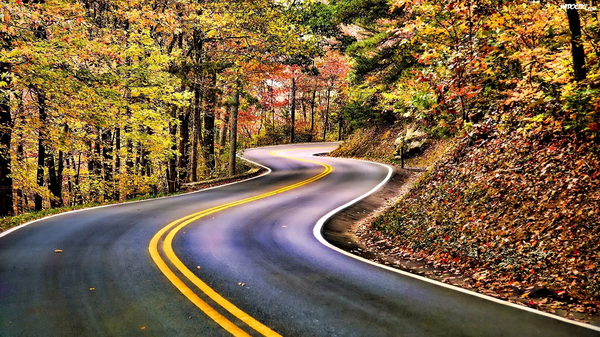 Zdjęcia, Jesienny, Las, Szosa