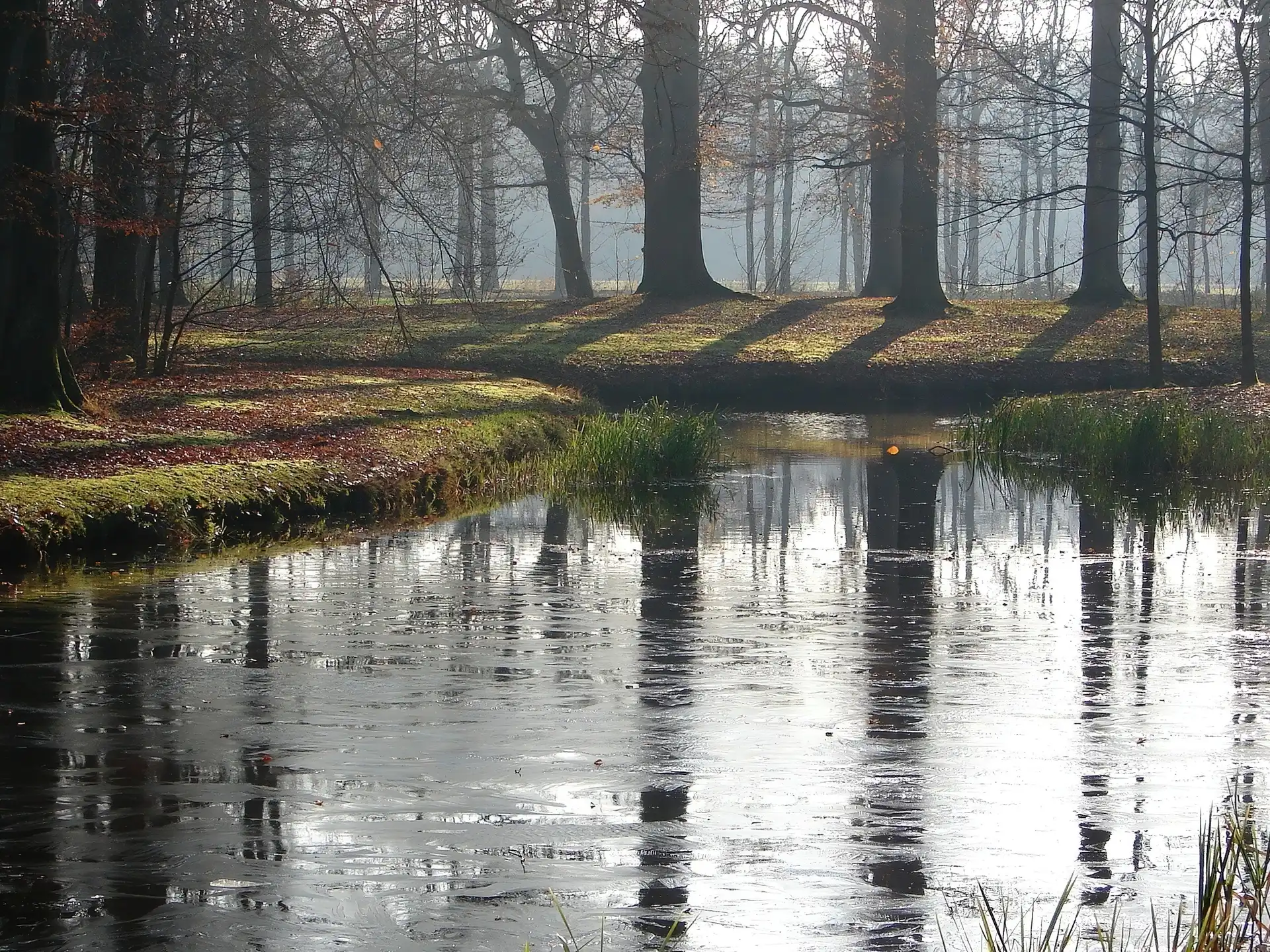Zdjęcia, Jezioro, Las, Poranek