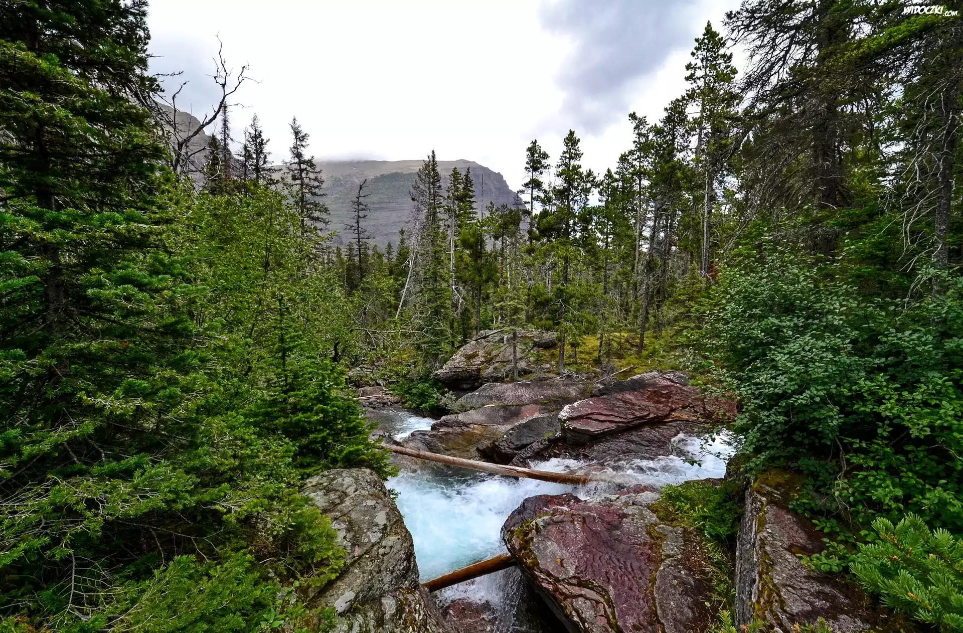 Zdjęcia, Las, Góry, Kamienie, Wodospad
