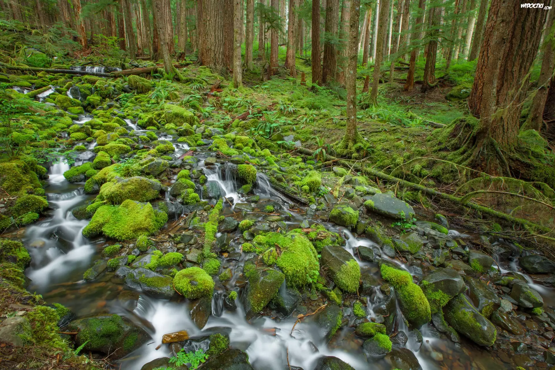 Zdjęcia, Las, Rzeczka, Kamienie, Roślinność