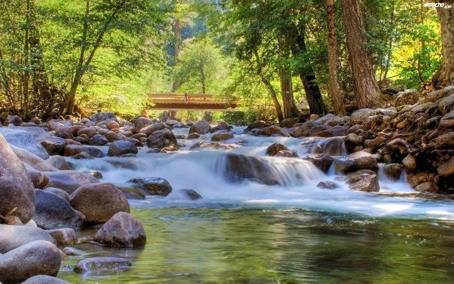 Zdj臋cia, Las, Rzeka, Kamienie, Most