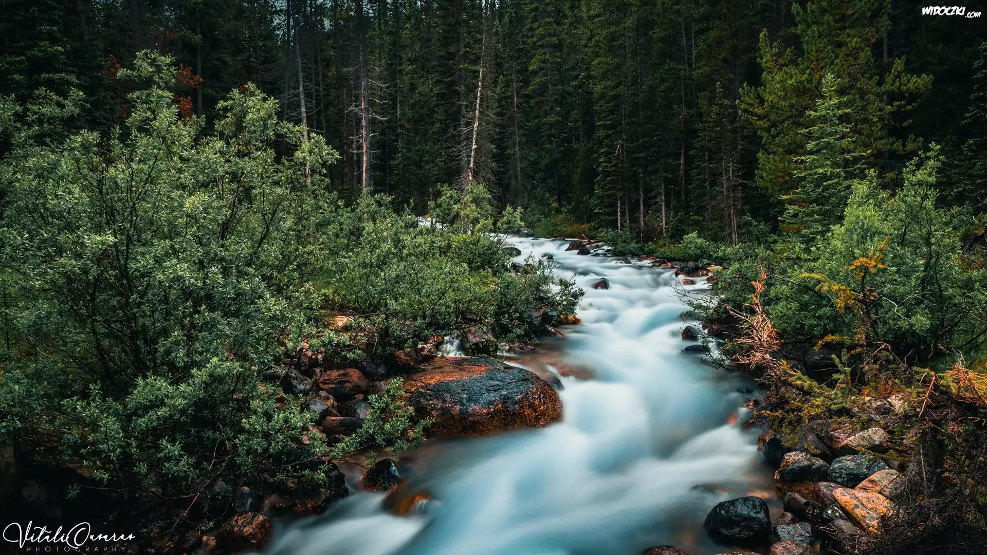 Zdjęcia, Las, Rzeka, Kamienie, Roślinność