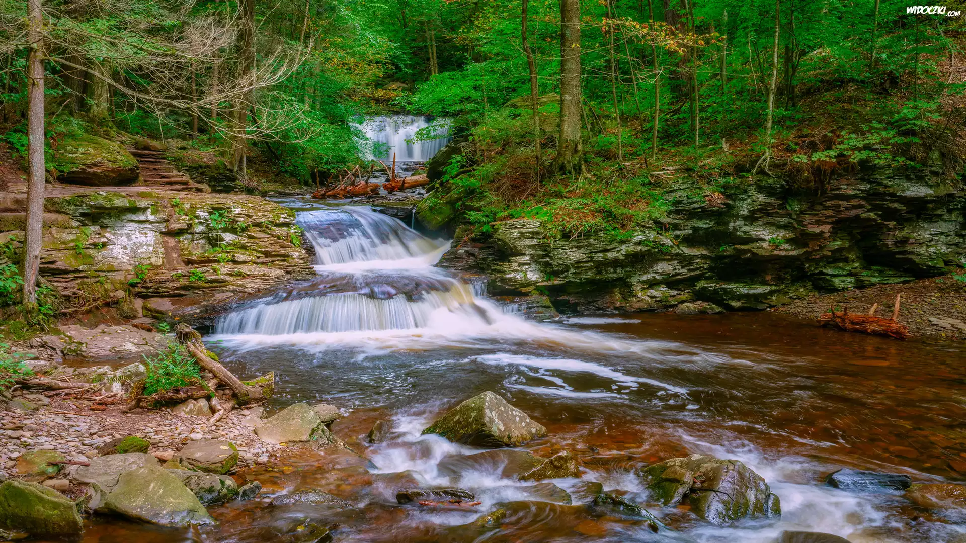 Zdjęcia, Las, Wodospad, Rzeka, Kamienie, Skały