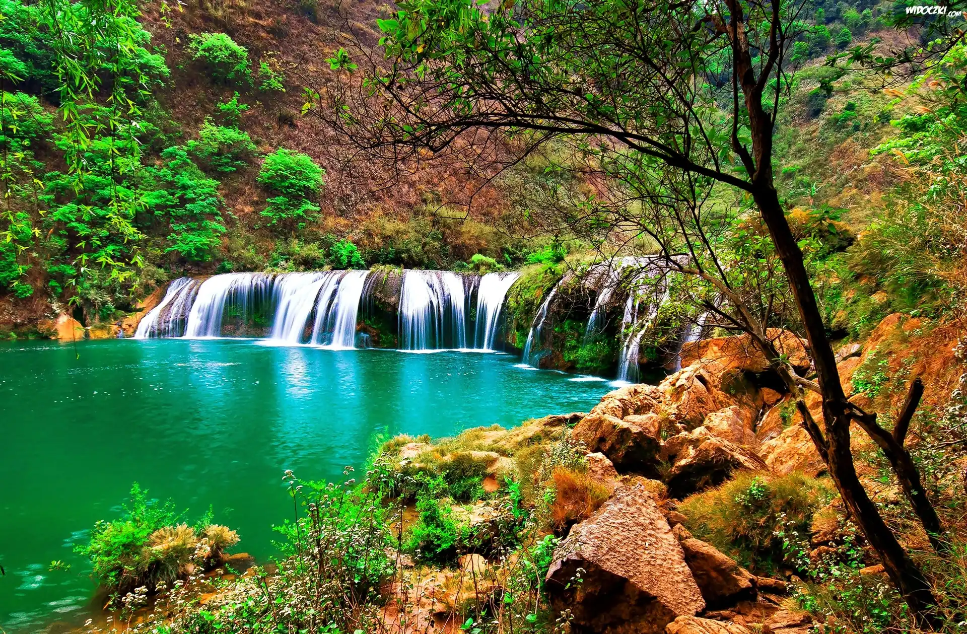 Zdjęcia, Las, Wodospad, Kamienie, Rzeka