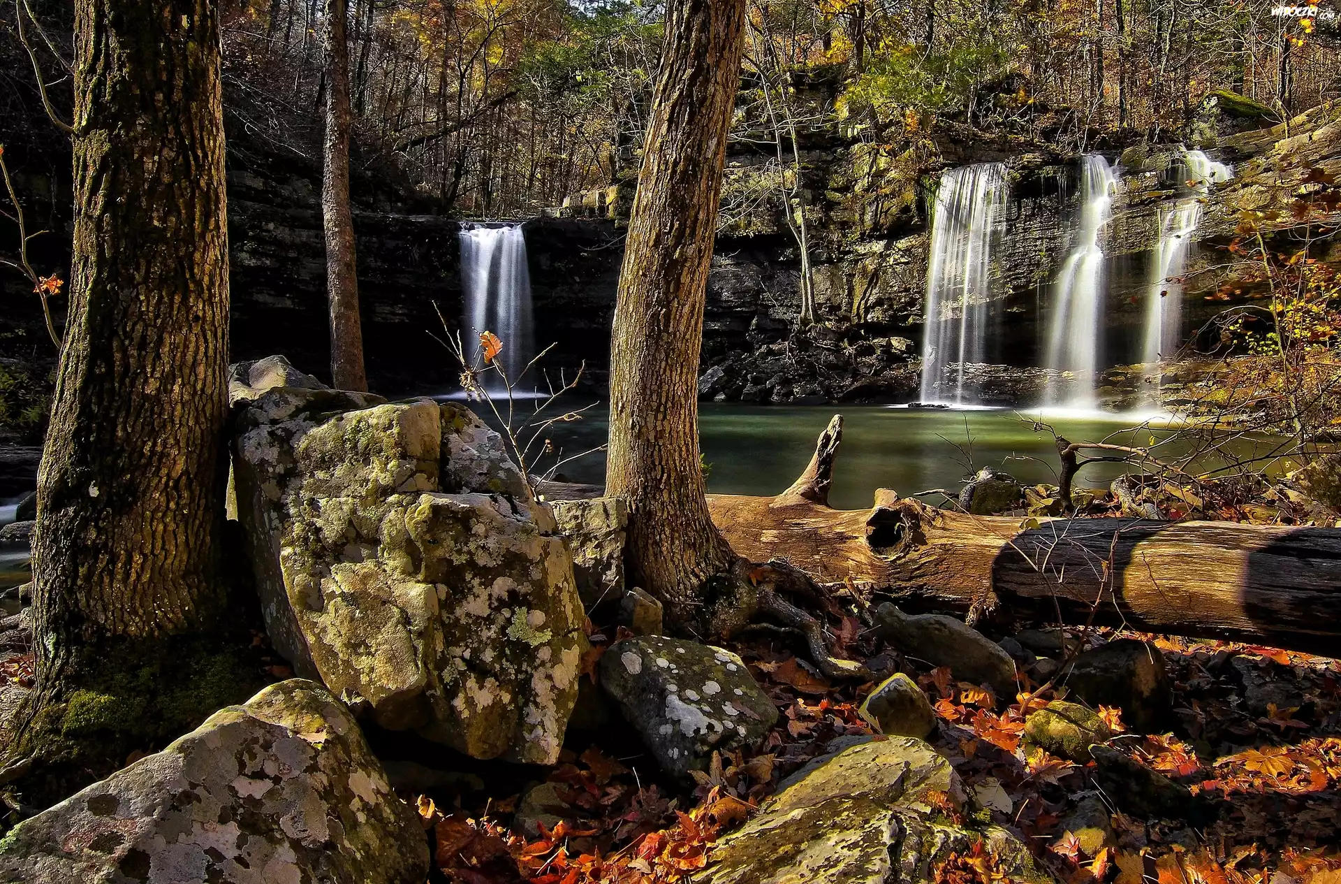 Zdjęcia, Las, Wodospady, kamienie, Jesień