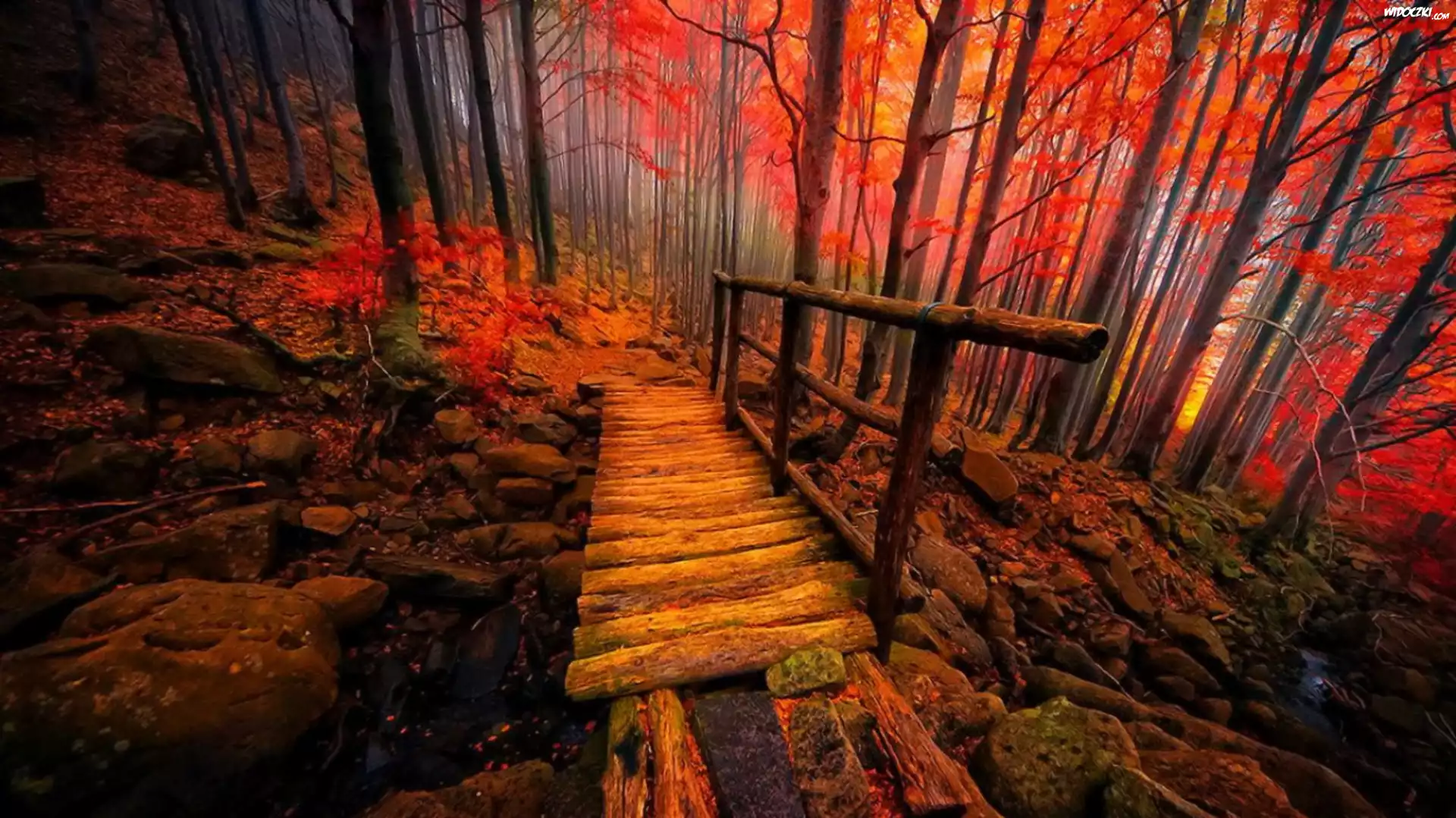 Zdjęcia, Kładka, Las, Liście