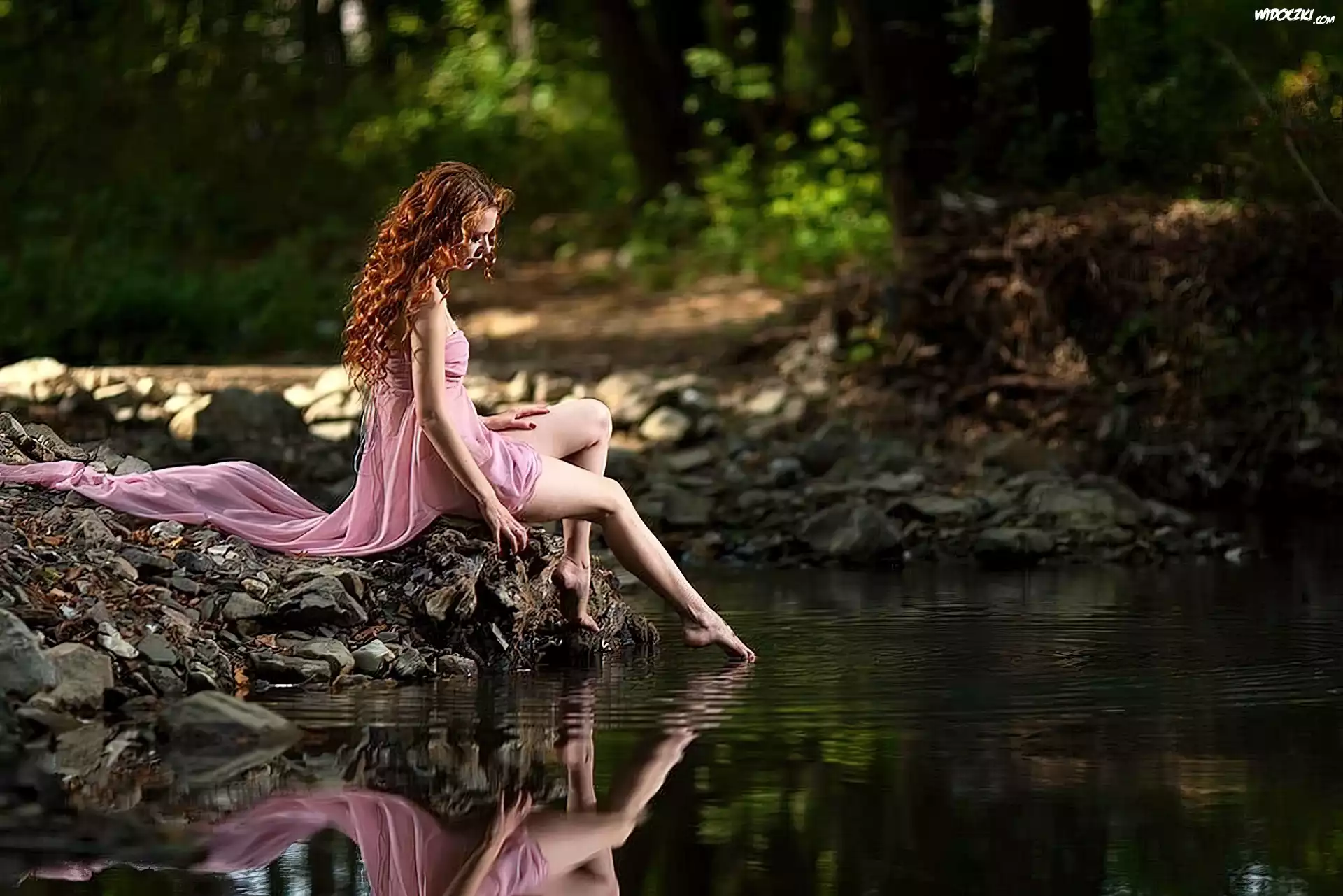 Zdjęcia, Kobieta, Las, Jezioro