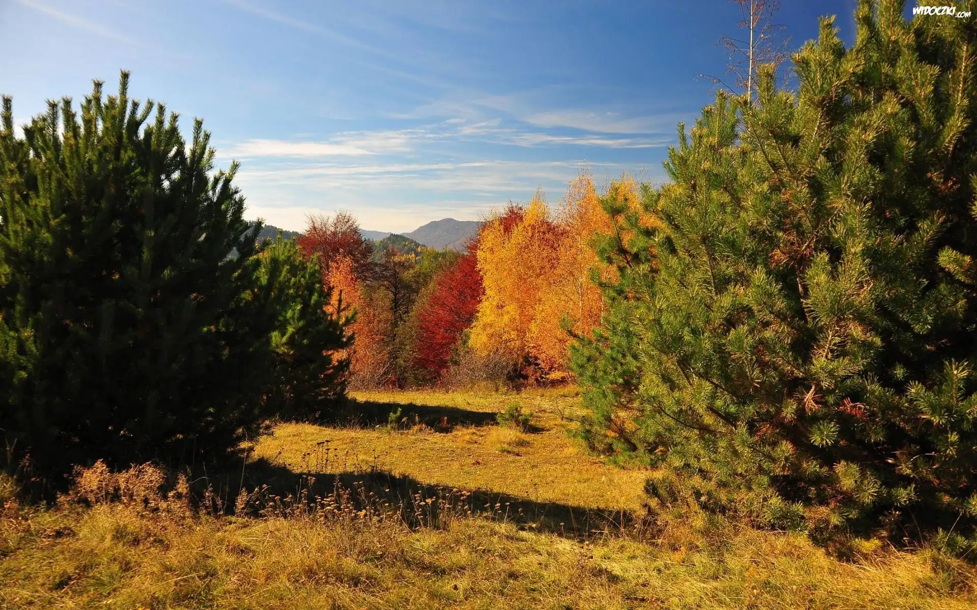Zdjęcia, Las, Drzewa, Gama, Kolorów, Jesień