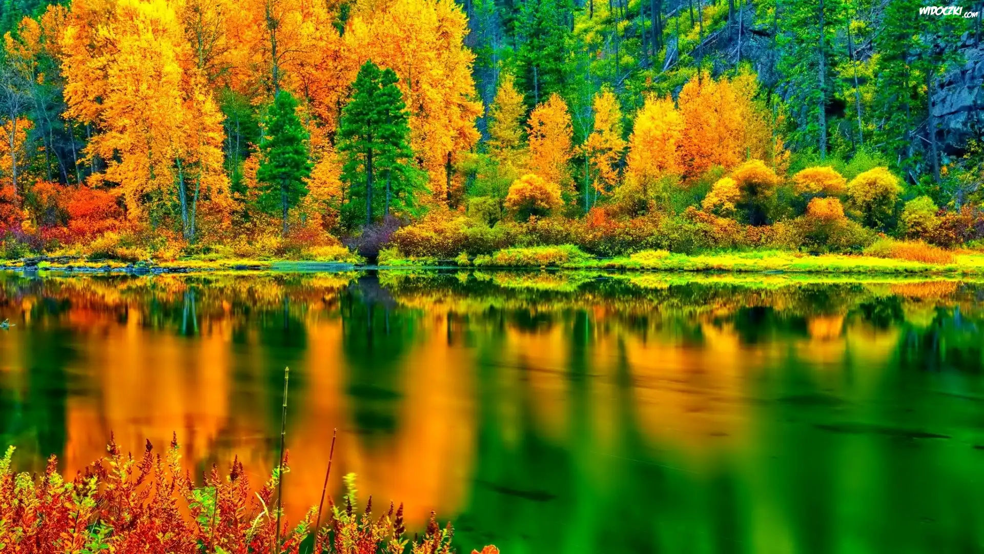 Zdjęcia, Las, Jezioro, Kolorowe, Liście