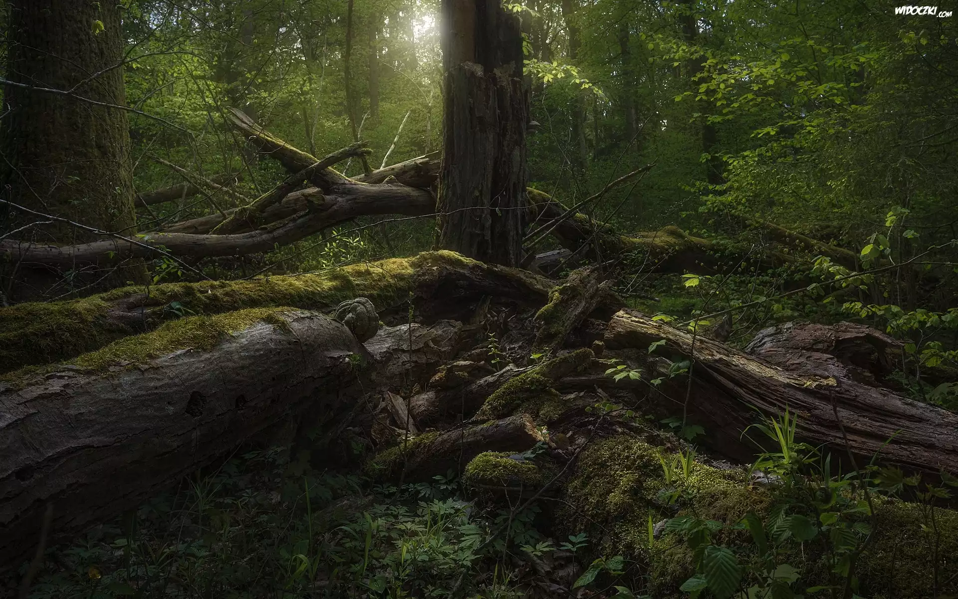 Zdjęcia, Las, Połamane, Drzewa, Konary, Rośliny
