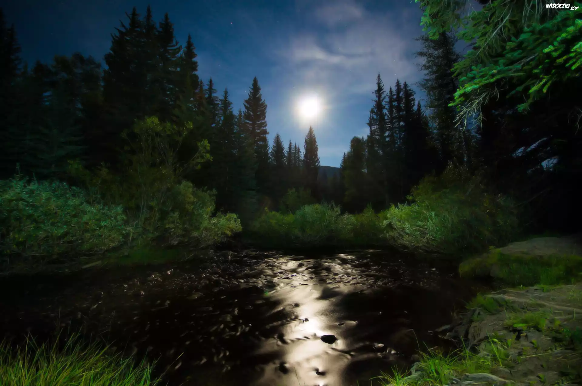 Zdjęcia, Las, Noc, Księżyc, Bagna