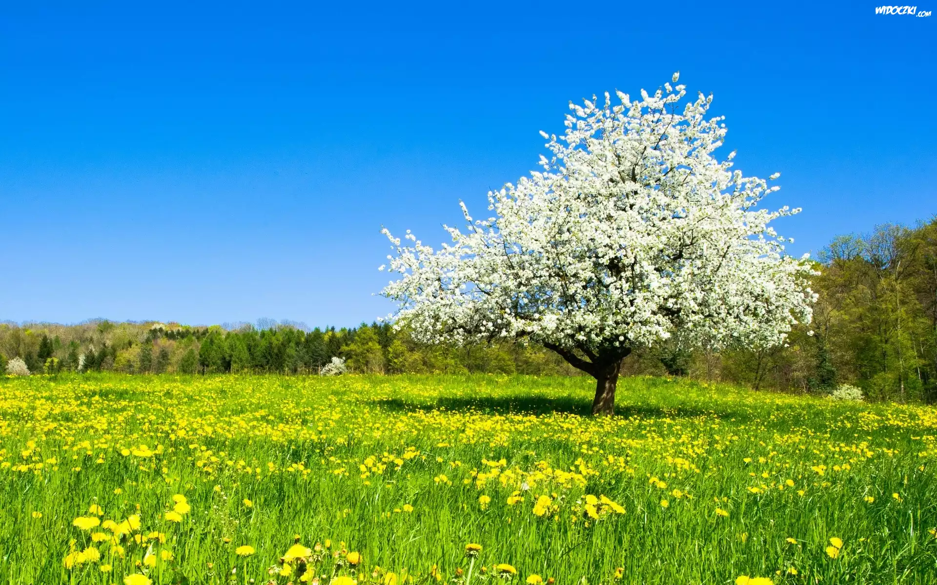 Łąka, Kwiat, Drzewo, Las, Wiosna