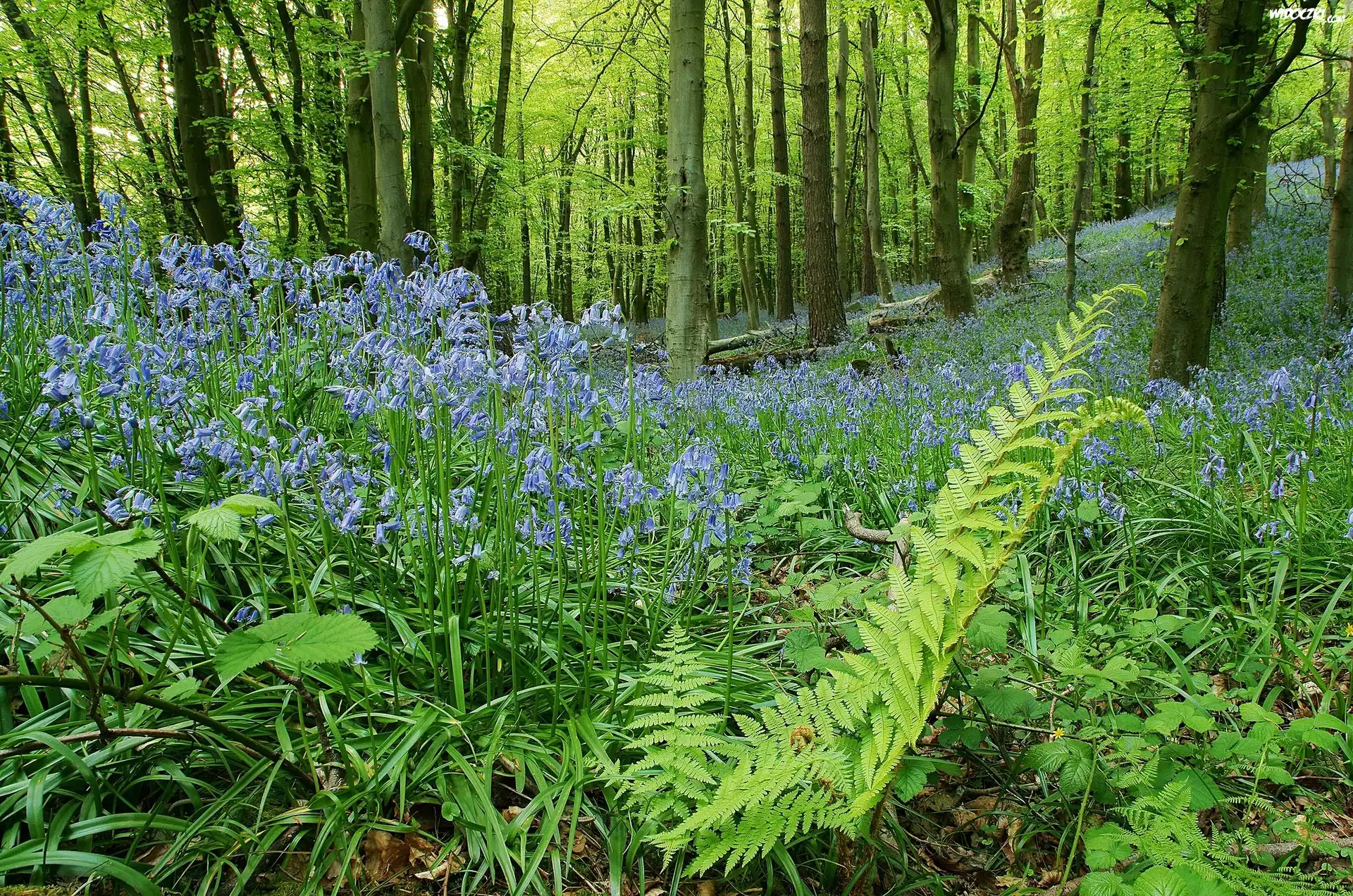 Zdjęcia, Las, Niebieskie, Kwiatki, Zieleń