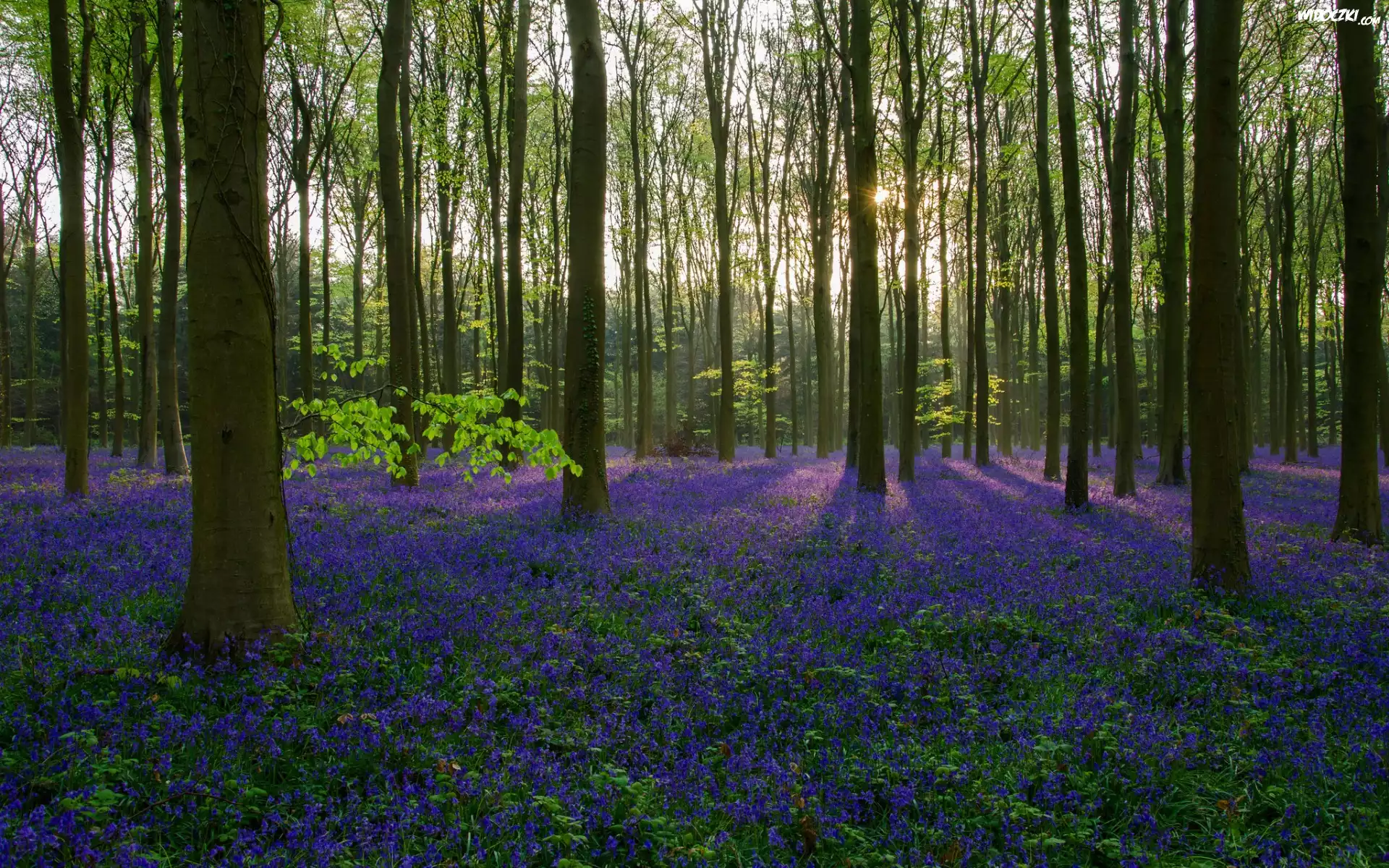 Zdjęcia, Las, Słońce, Kwiaty, Wiosna