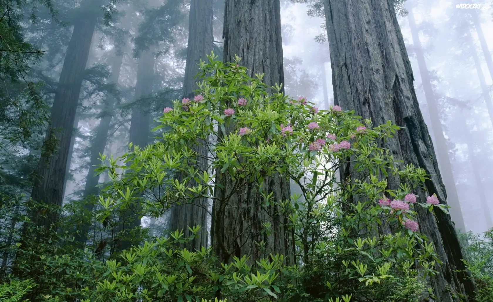 Zdjęcia, Las, Mgła, Kwitnący, Krzew