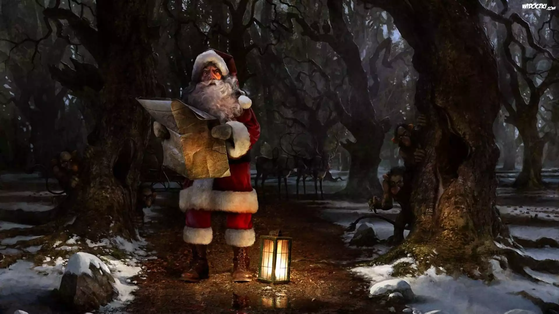 Zdjęcia, Las, Mikołaj, Mapa, Lampa, Zwierzęta