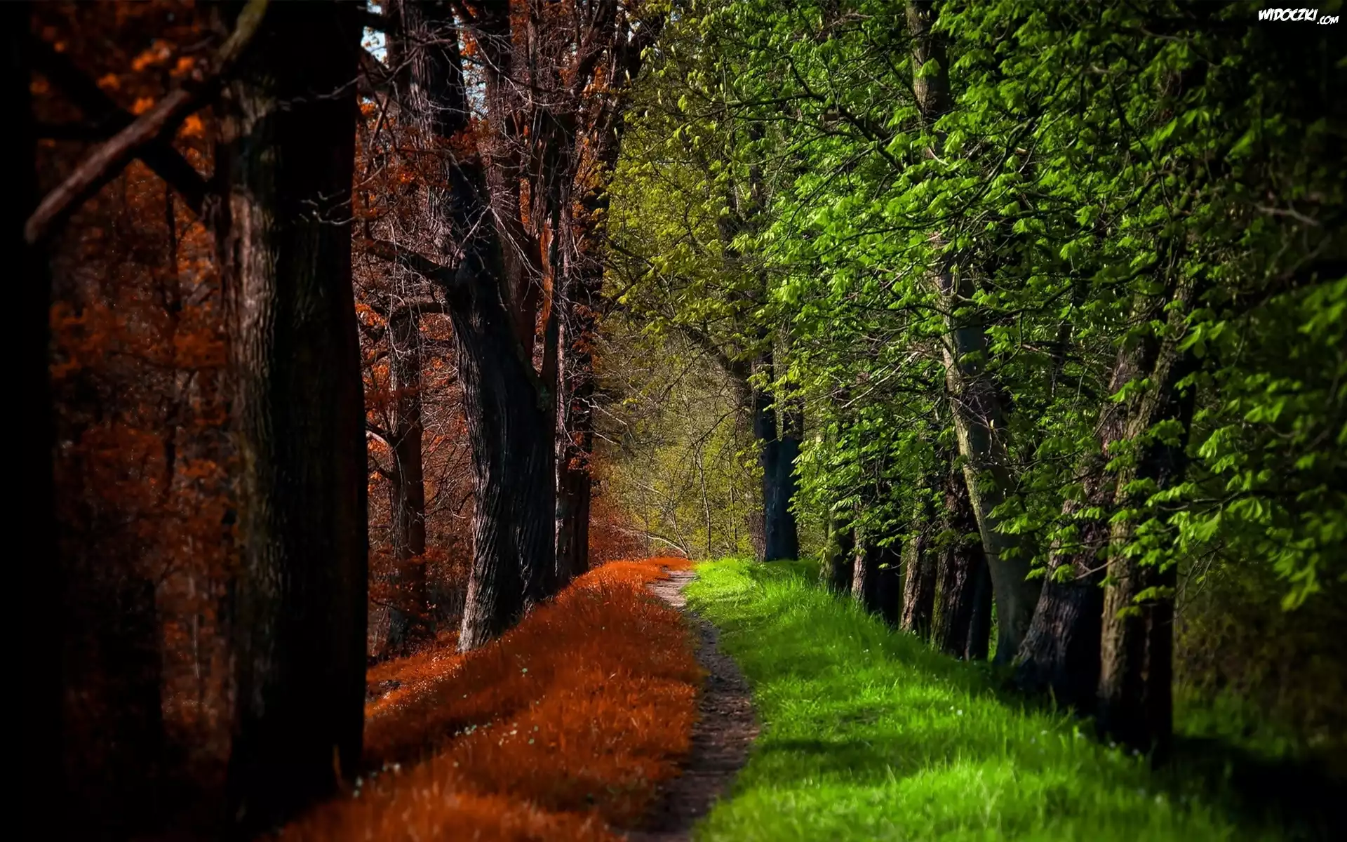 Las, Drzewa, Ścieżka, Lato, Jesień