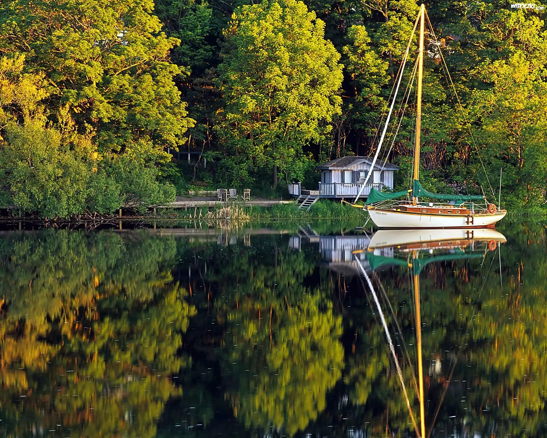 Zdjęcia, Las, Jezioro, Domek, Letniskowy, Żaglówka