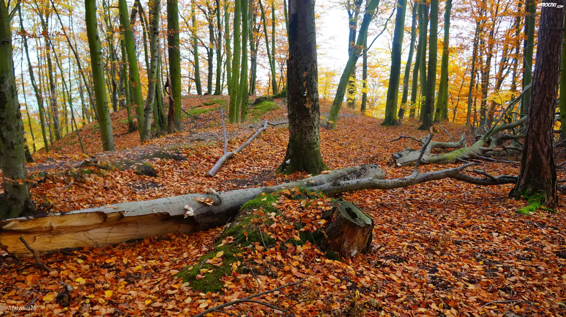 Zdjęcia, Las, Jesień, Powalone, Drzewo, Leżący, Pień