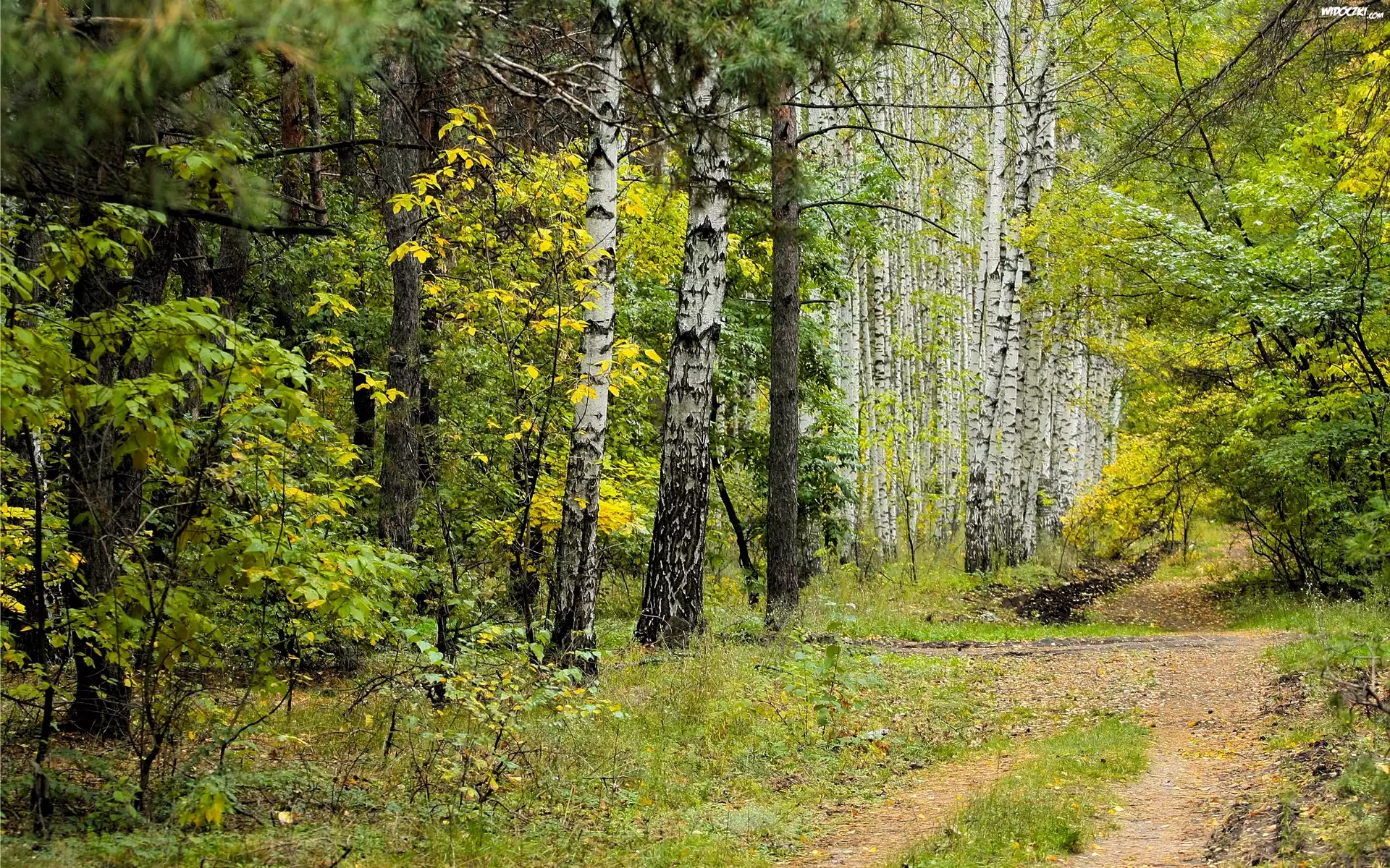 Zdjęcia, Las, Brzozowy, Liście, Jesień
