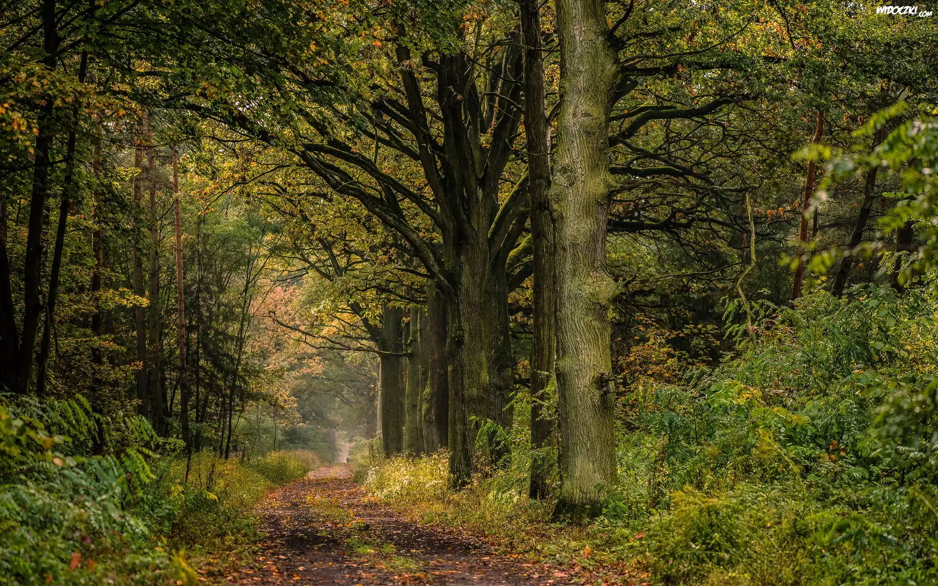 Zdjęcia, Las, Droga, Liście, Jesień