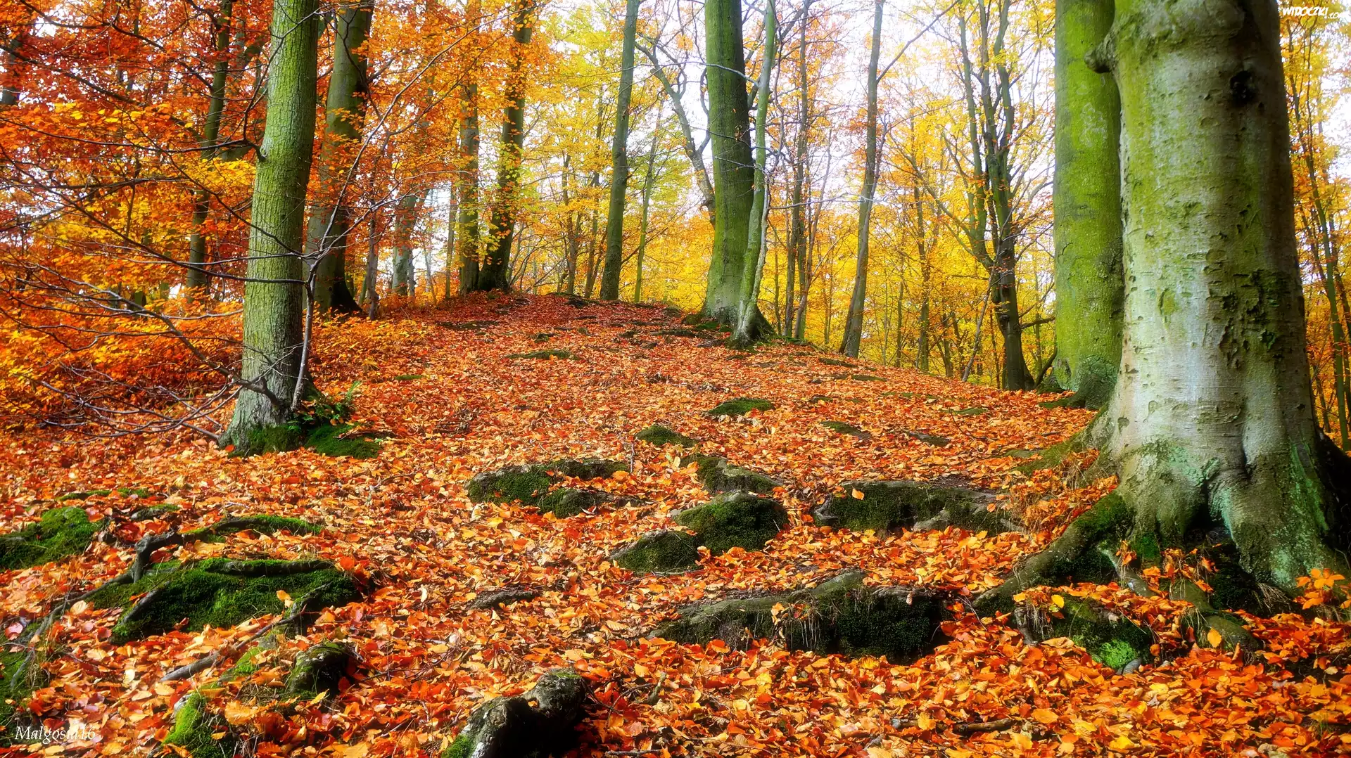 Zdjęcia, Las, Jesień, Drzewa, Liście, Mech