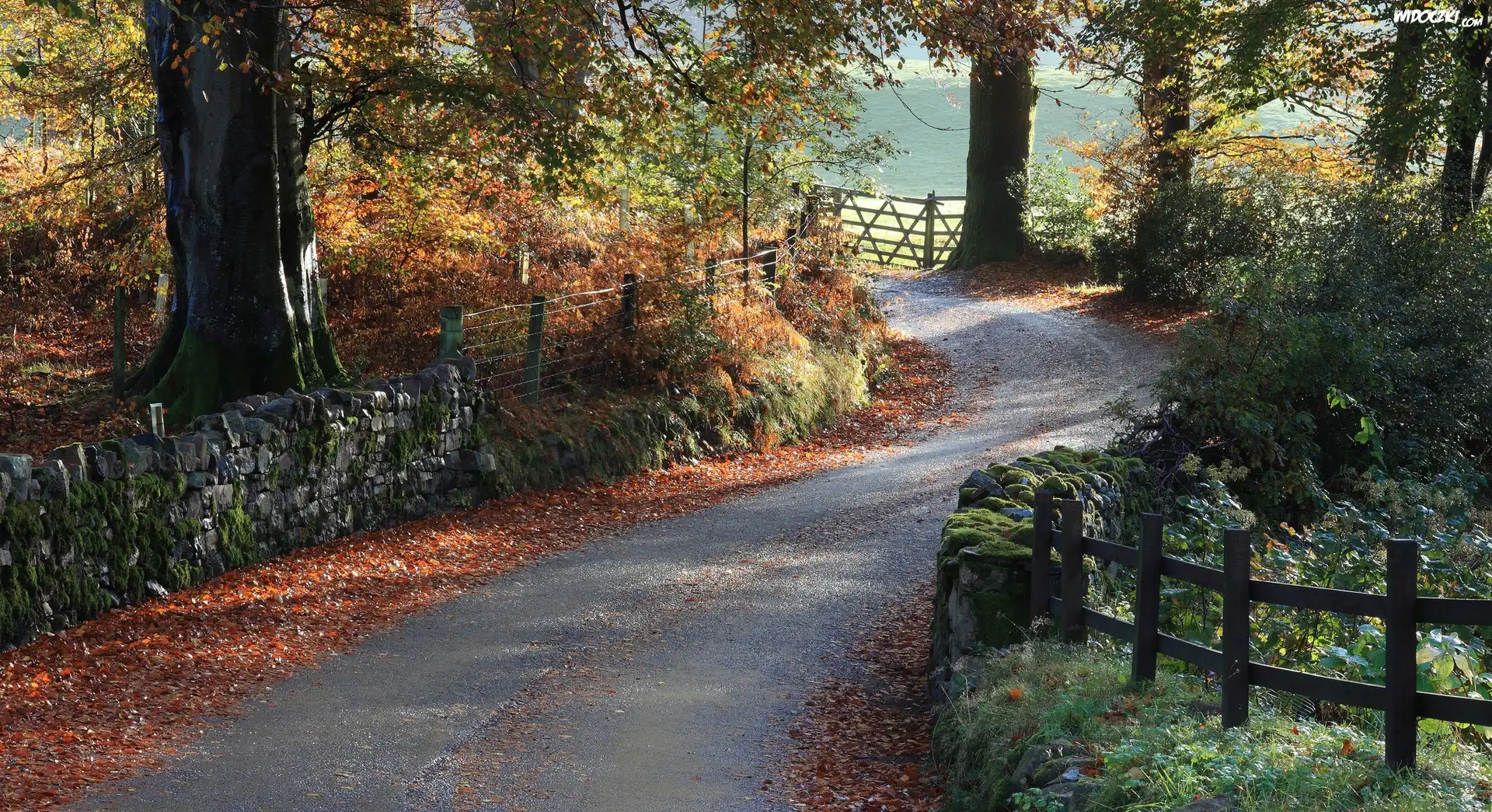 Zdjęcia, Las, Droga, Jezioro, Góry, Liście, Jesień