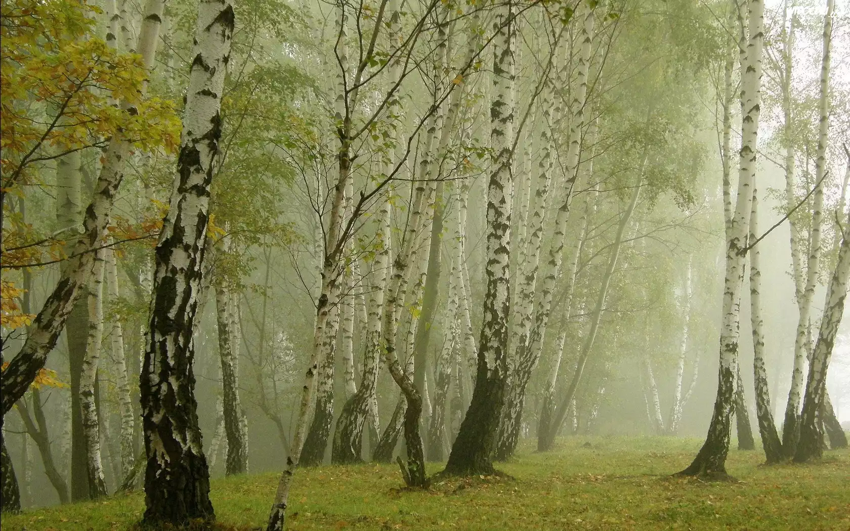 Las, Brzozowy, Mgła, Liście, Jesień