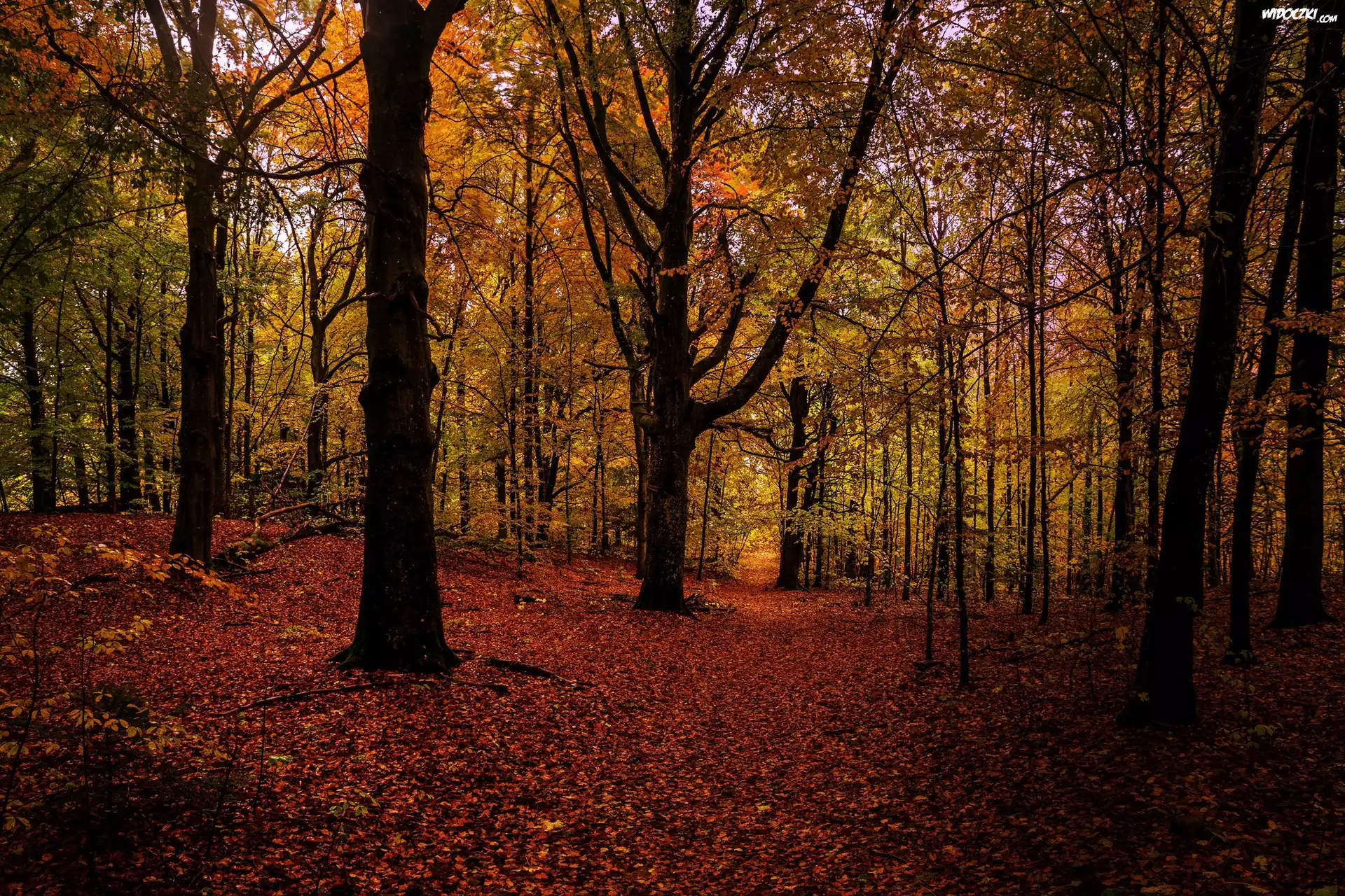 Zdjęcia, Las, Drzewa, Opadłe, Liście, Jesień