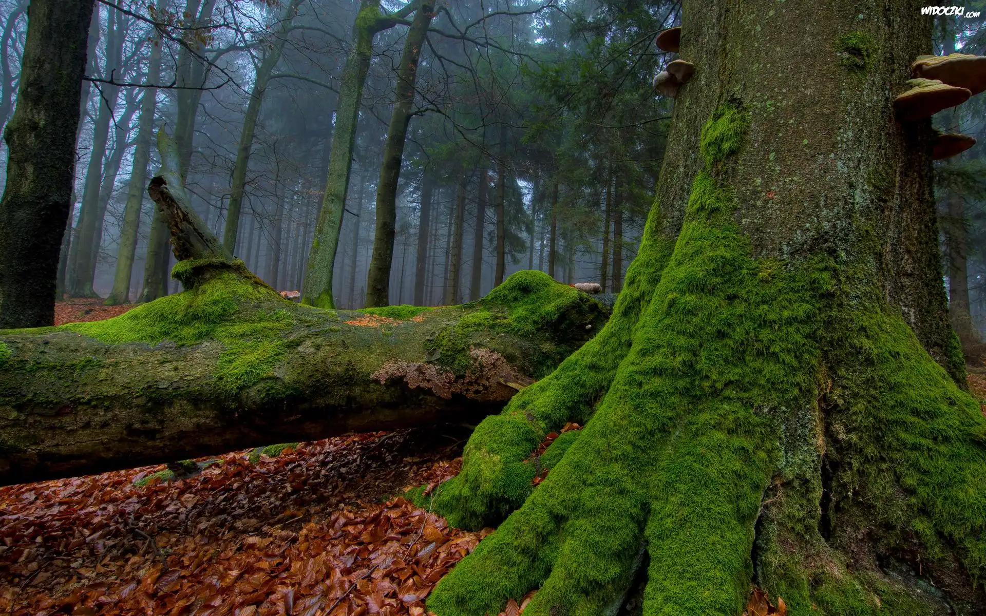 Zdjęcia, Las, Liście, Drzewa, Mech, Jesień